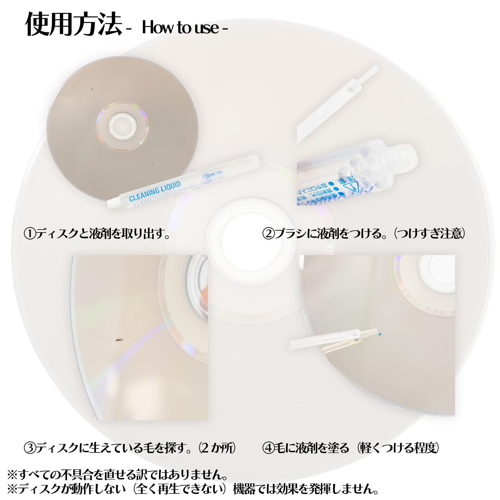 クリーニング手順は非常にシンプルです。専用のクリーニングディスクをデバイスに挿入し、使いたい液を適量振りかけるだけ。手間なくすぐにお使いいただけますので、忙しい日常の合間にも手軽にお手入れを行えます。クリーニング後は、快適な視聴体験をお楽しみください!