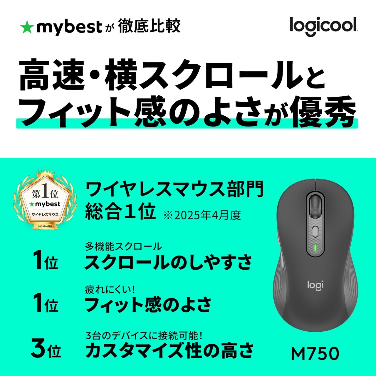 Logicool Signature M750MGR ワイヤレスマウス 静音 レギュラー グラファイト ワイヤレス マウス 無線 Bluetooth Logi Bolt Unifying非対応 windows mac iPad Android Chrome OS スクロールホイール 無線マウス 静音マウス M750 国内正規品