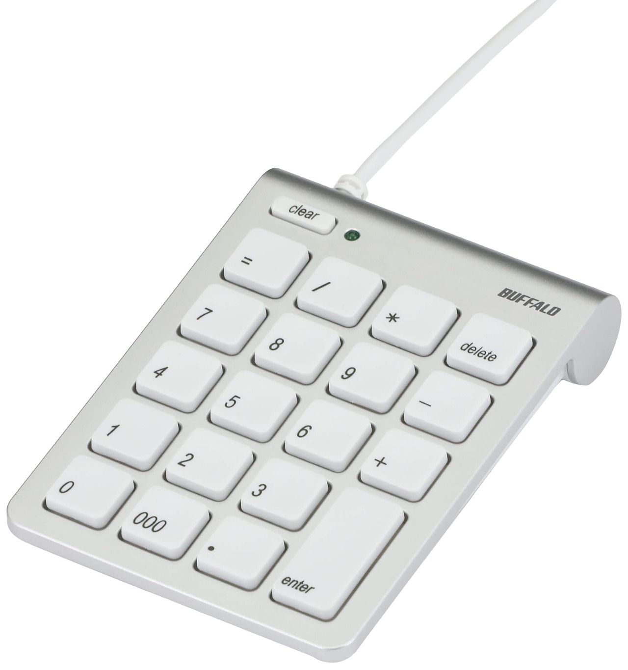 テンキーレスのキーボードでも、このテンキーがあれば不便だった数字入力も簡単に。高額入力に適した「000」キー付き。
