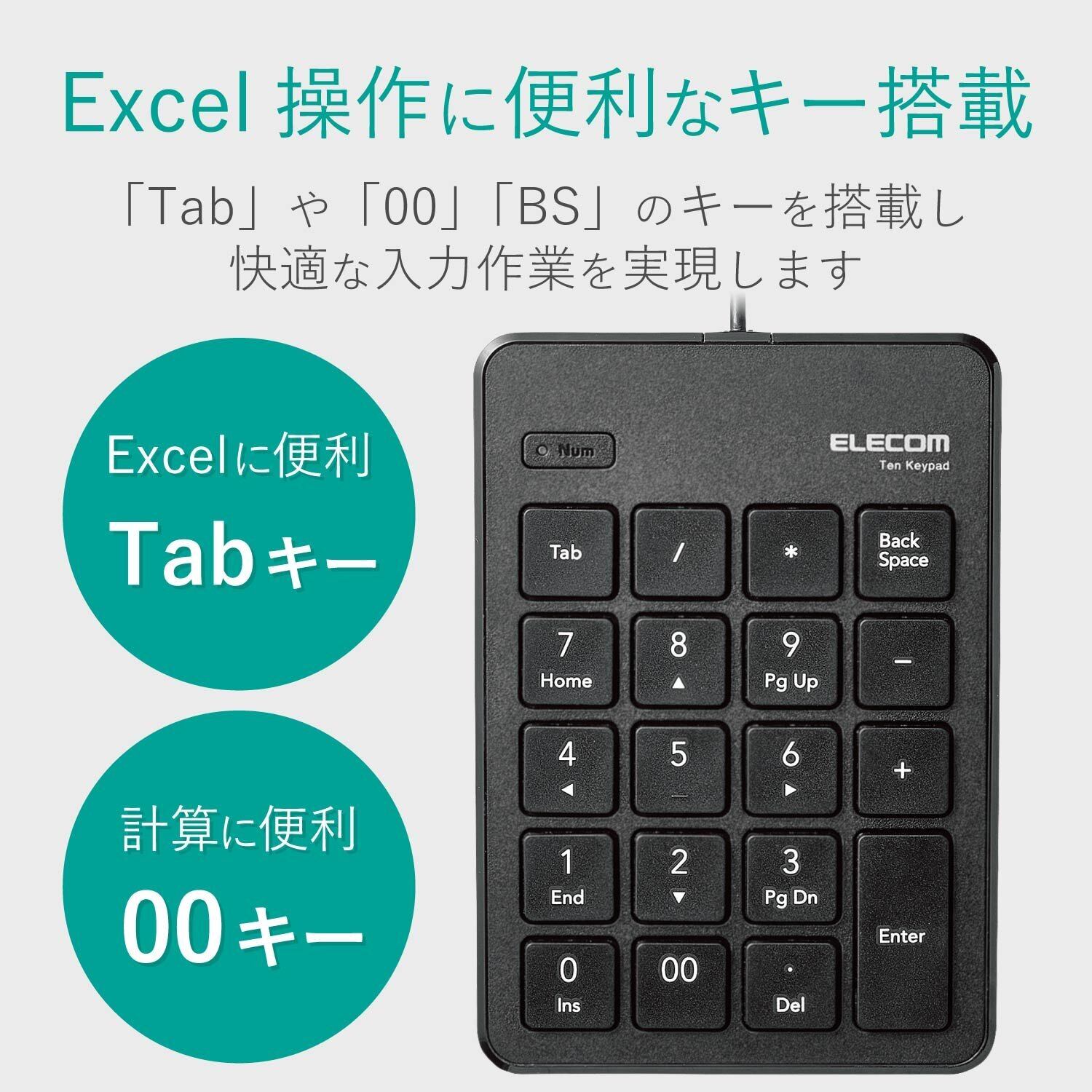 この【エレコム テンキー】は、有線接続による安定した操作感を提供し、快適なデータ入力が可能です。シンプルでスタイリッシュなデザインは、どんなデスクにもマッチし、専用のサポート機能により手軽に使用できます。