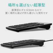 最薄部わずか6.5mmの薄型設計で、場所を選ばず使用できる有線薄型テンキーパッドです。
