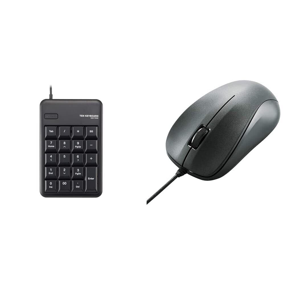 【在庫処分】【セット買い】エレコム テンキー 有線 メンブレン Mサイズ USBポート付 1000万回高耐久 ブラック TK-TCM012BK & マウス 有線 Mサイズ 3ボタン USB 光学式 ブラック ROHS指令準拠 M-K6URBK/RS