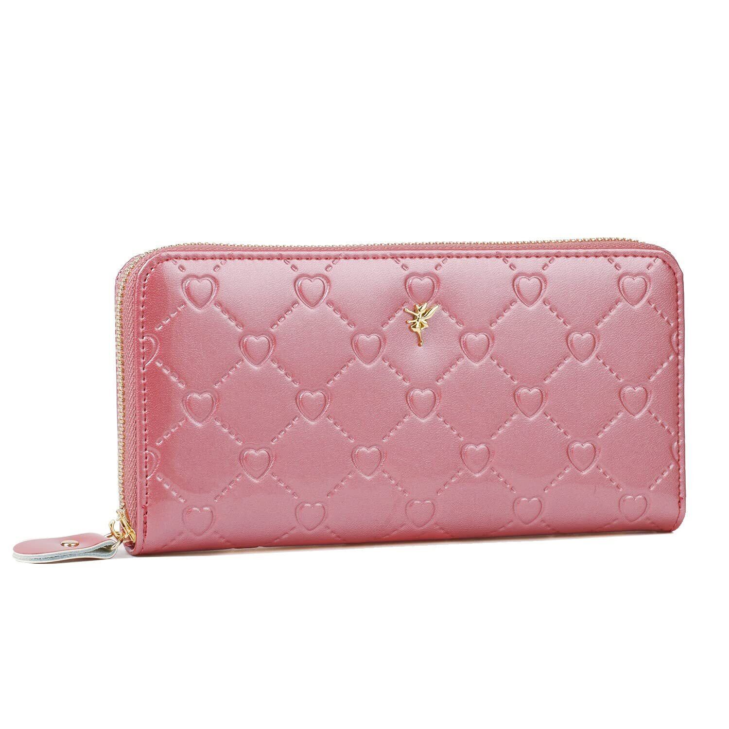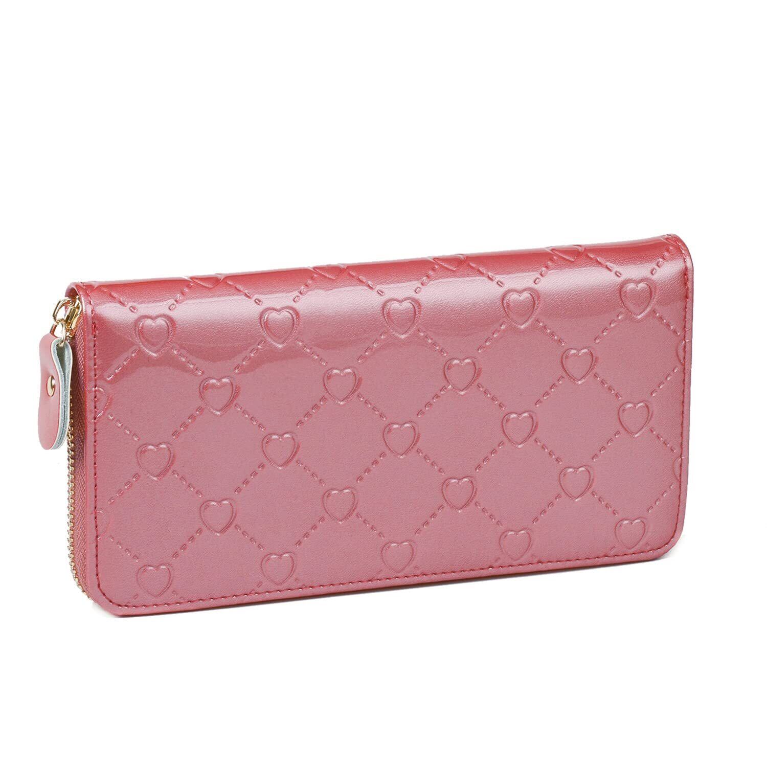 [フェアーフェアリー] レディース財布 本牛革 エナメル 型押し ラウンドファスナー長財布 140817 (アウトレット ハートダークピンク)