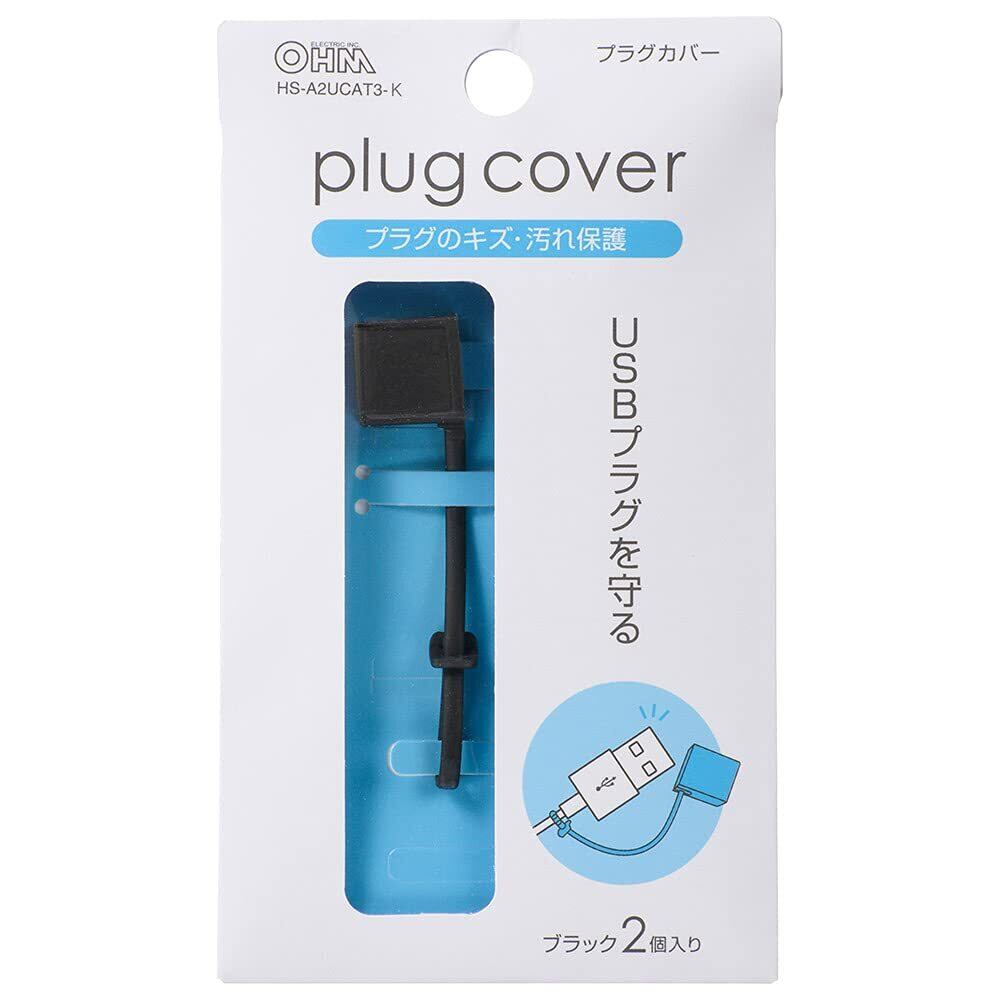オーム電機 USBプラグカバー ブラック 2個入 HS-A2UCAT3-K 00-5196 OHM