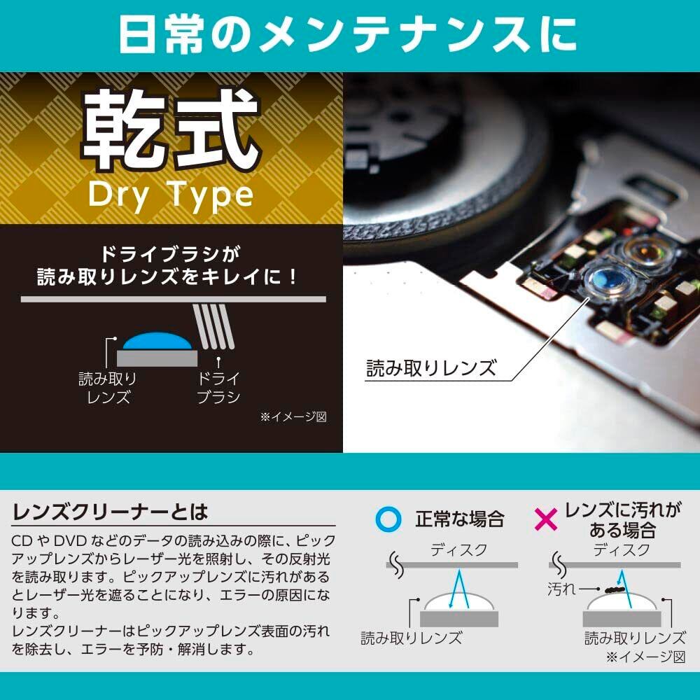 【 仕 様 】 ◆乾式(ドライタイプ) ◆対応機種:DVDレコーダー、ゲーム機、PC ◆使用可能回数(目安):約100回 ※レンズの汚れ具合により変わります