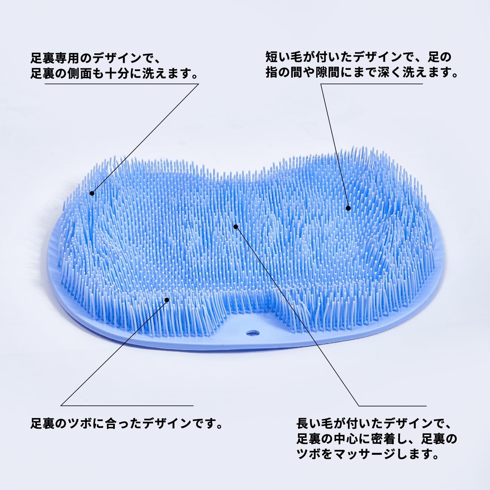 特殊なブラシ構造により、足裏にしっかりフィットし、気になる汚れや角質を優しくかき取ります。水流とともに使うことで、リフレッシュ感を得られ、毎日の入浴時に気軽に足のお手入れが楽しめます。さらに、マットの素材は耐久性に優れ、長期間ご使用いただけます。