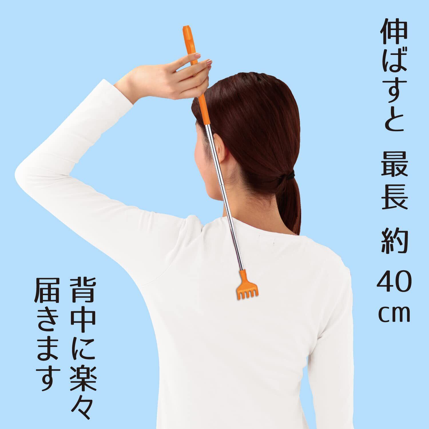 最長約40cm、かゆいところにラクラク手が届きます。縮めれば約18cmのコンパクトサイズで持ち運び便利。