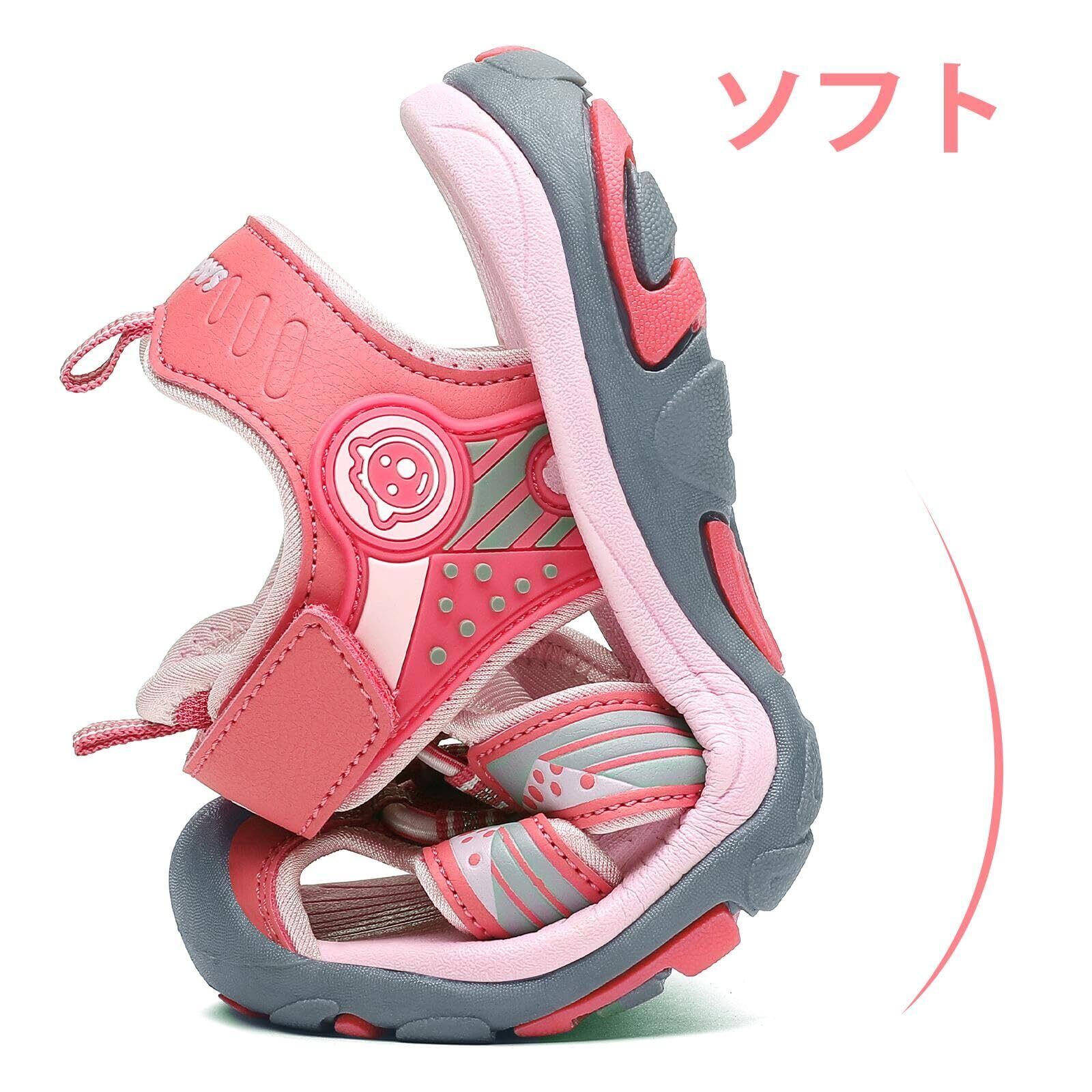 [Putu] キッズ サンダル ビーチサンダル つま先保護 マジックテープ アウトドア スポーツ 透気 柔らかい 滑り止め 春夏秋 男の子 女の子