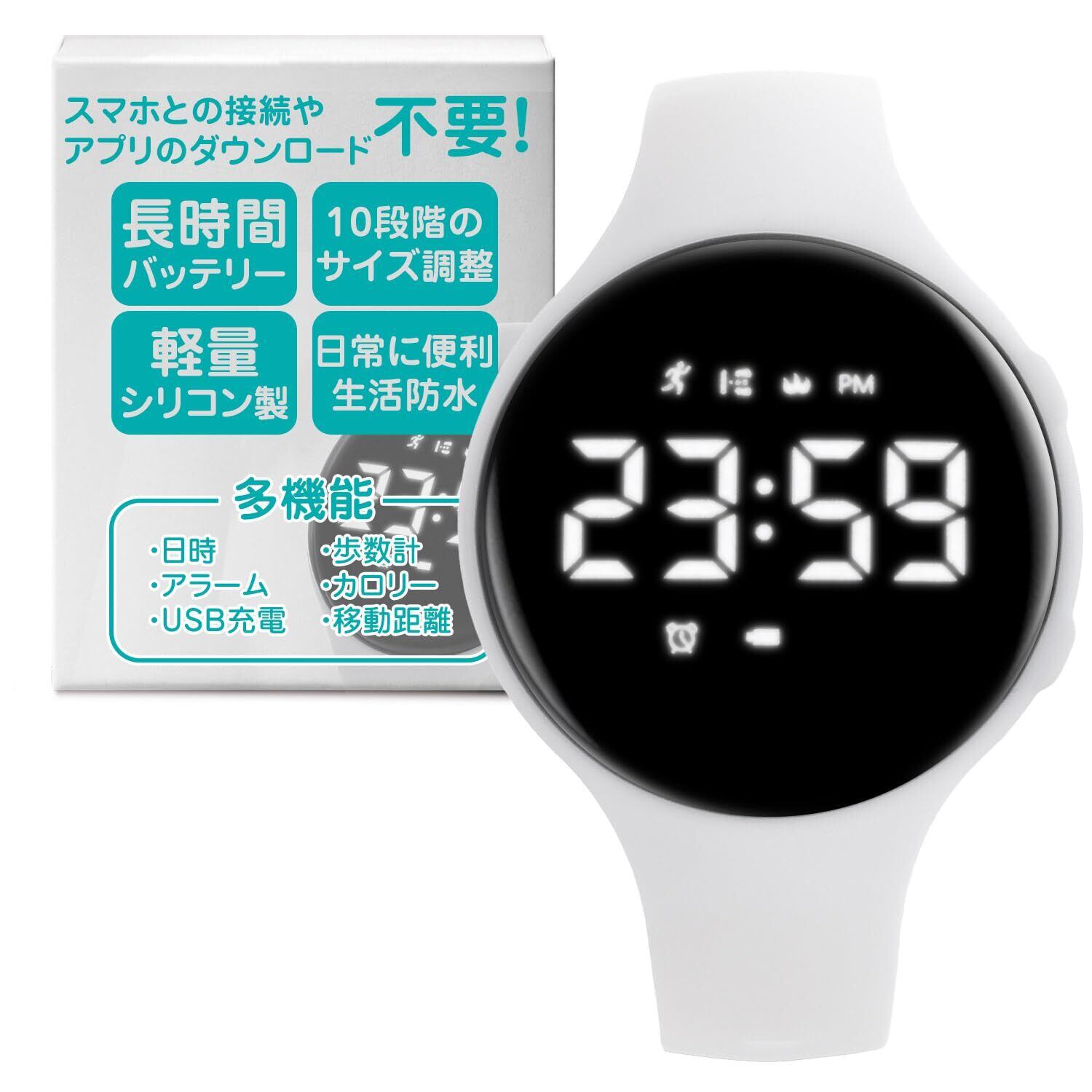 子供 腕時計 デジタル キッズ腕時計 多機能 「防水仕様x万歩計xカロリー計算xアラームxUSB充電」【Dawnlord】 (ホワイト)