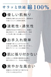 【お手入れ簡単】 洗濯機での丸洗いが可能なため、日々のお手入れも簡単です。 【肌触り抜群】 直接肌に触れるアイテムだからこそ、肌なじみの良いコットン素材を使用しています。 この高品質なコットンは、通気性と速乾性に優れており、暑い日でも快適に過ごせます。 【デザイン】 このステテコは、デイリーユースに最適で、カジュアルながらも洗練されたデザインが特徴です。 さらに、発色が鮮やかなプリントデザインは、見た目にも楽しい気分を提供し、毎日の着用をより一層楽しくします。 当商品は、ベーシックながらも洗練されたデザインを採用し、2枚セットと3枚セットの選択肢を提供します。 チェック柄、プリント柄、楊柳チェック柄、カジュアル柄の4種類の柄から成るランダムセットです。