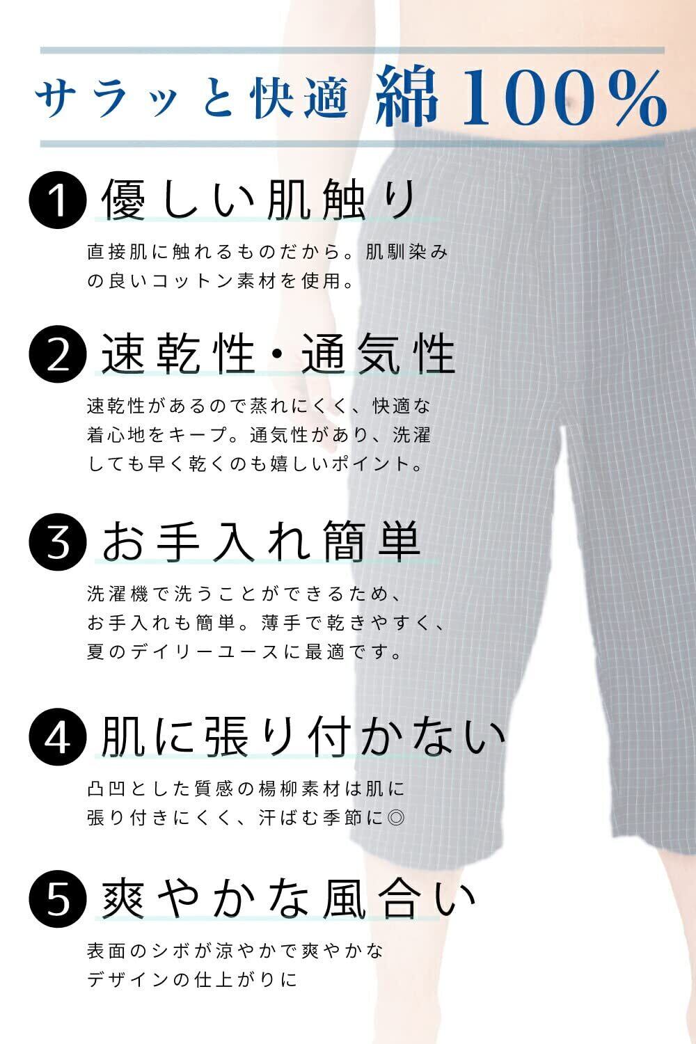 [Y's factory] ステテコ 3枚 2枚 セット メンズ カジュアル 楊柳 プリント チェック柄 7分丈 綿100% 前あき 春 夏 インナー パンツ 部屋着 ルームウェア 着心地 リラックス 福袋