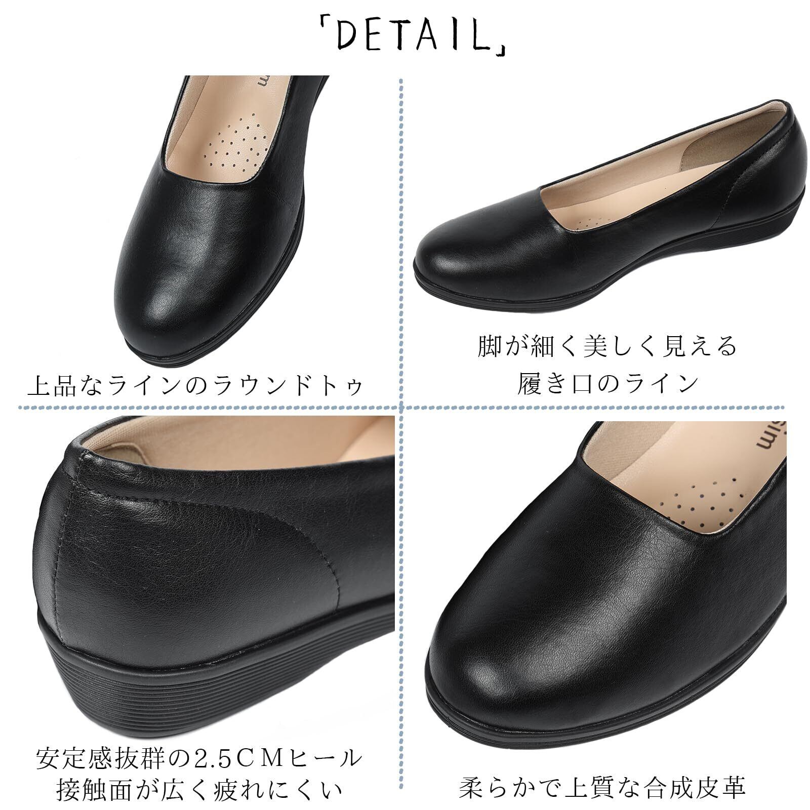 [Solcy] パンプス レディース 2.5cmヒール 3E オフィスパンプス 歩きやすい レディースパンプス 痛くない 靴 ラウンドトゥ ローヒール フォーマル 軽量 おしゃれ 幅広 美脚効果 立ち仕事 冠婚葬祭 疲れない