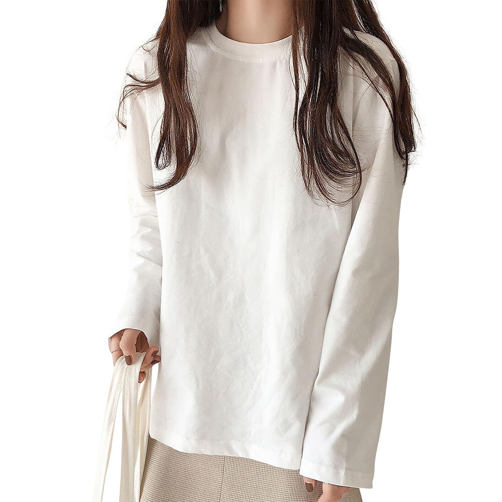 [Adcey] 【新色追加!】Tシャツ レディース 長袖 トップス 【秋冬の定番·もちふわタッチ·型崩れしにくく】 カットソー ティーシャツ 丸首 クルーネック ロングスリーブ カジュアル 着痩せ ゆったり 重ね着 無地 シンプル きれいめ おしゃれ