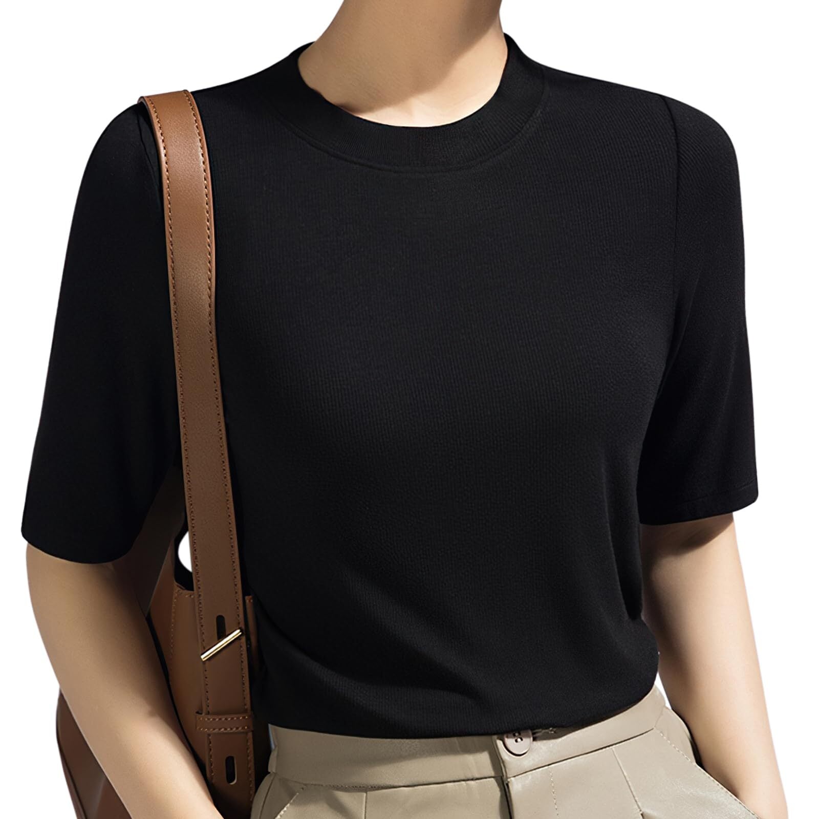 【新着商品】[YUMISS] 5分袖Tシャツ レディース 半袖 春 夏 【二の腕細見え・抜け感溢れた】 Tシャツ トップス 無地 丸首 柔らかい 通気 透けにくい おしゃれ シンプル カジュアル 通勤 オフィス インナー カットソー