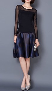 ストレッチ素材で身体にフィットしてスタイル良く見せます。袖とデコルテ部分がシースルーでセクシーです。