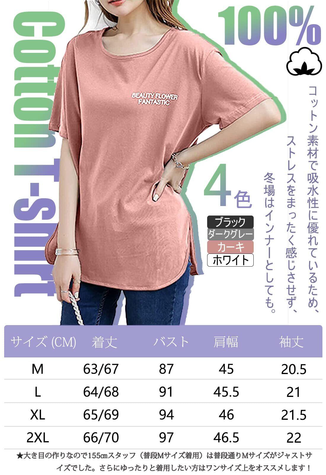 [INNIFER] 無地 Tシャツ レディース 半袖 ゆったり 大きいサイズ 黒 白 英字 バッグプリント クルーネック ロング丈 スリット カットソー 夏 秋 シンプル おしゃれ