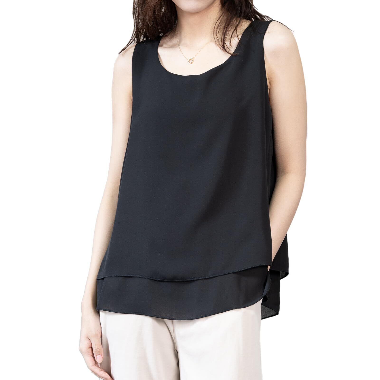 [iito.seasons] ノースリーブシャツ レディース シフォン タンクトップ フリルブラウス ブラウス トップス 重ね着 裾フリルインナー オシャレ