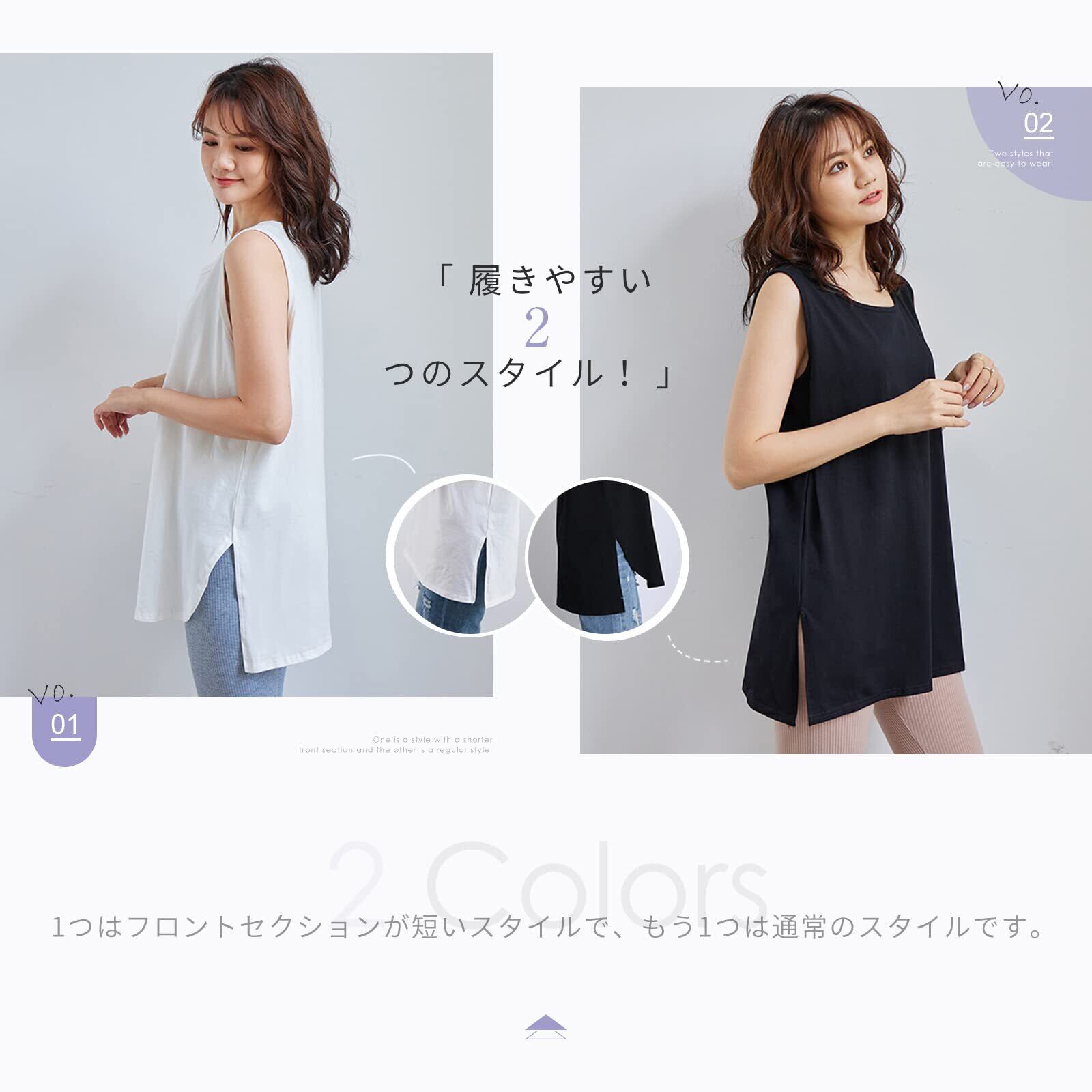 【履きやすい2つのスタイル】2つの異なるスタイルがあります。 1つはフロントセクションが短いスタイルで、もう1つは通常のスタイルです。ボトムスを選ばないのでコーデに困りません。スタイリングにも取り入れやすく、お手持ちのボトムスとも好相性。シンプルながらもトレンドを加えたお洒落なデザインのトップスは1枚でコーディネートが決まります。カジュアル過ぎない上品見え大人ノースリーブtシャツ。