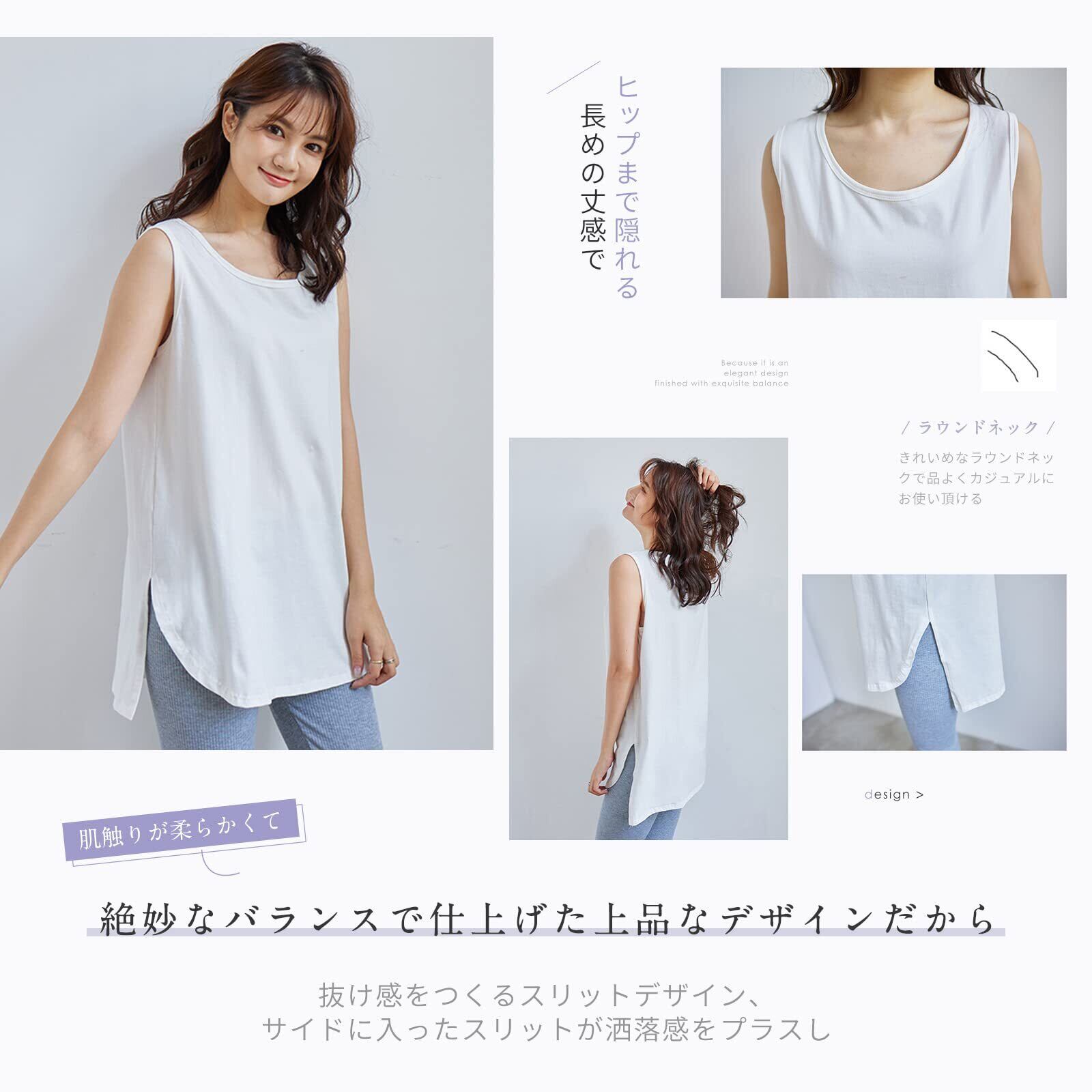 【新着商品】[KumiModa] タンクトップ レディース ノースリーブ ブラ紐隠し インナー レイヤード 冷感 涼しい ロング丈 Uネック トップス ゆったり 着痩せ 薄手 大きいサイズ 重ね着 体型カバー カジュアル 柔らかい 部屋着 日常 春夏秋