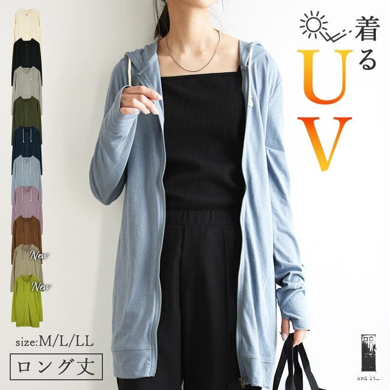 [アンドイット] UVロング丈フード ジップアップ パーカー レディース M L LL