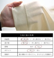 [サイズ/cm] [M]着丈約73、バスト約86、肩幅約37、袖丈約66、AH約42、袖口約18、裾幅約41.5 [L]着丈約76、バスト約94、肩幅約38、袖丈約67、AH約46、袖口約18、裾幅約45 [LL]着丈約78、バスト約102、肩幅約40、袖丈約69、AH約54、袖口約19、裾幅約50 [素材/%] ポリエステル80綿20 [製造国]中国製 ※透け感があります。 ※こちらのUVカット加工は100%紫外線をカットするものではございません。また洗濯を重ねる度にカット率が低くなりますのでご了承下さい。