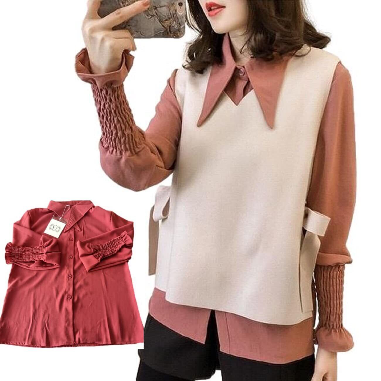【上品さ漂うブラウス&ベストのアンサンブル!】