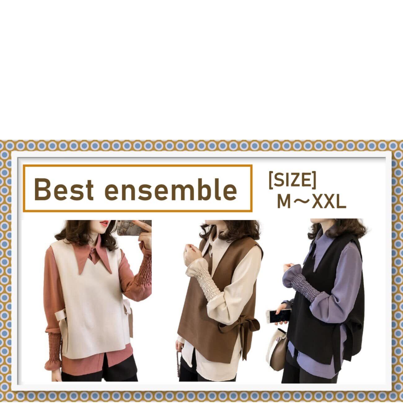 マンネリしがちなコーデのアクセントになるベストアンサンブル。 サイドのリボンは結んでも垂らしても その日の気分に合わせて変化を楽しめる優秀アイテム◎