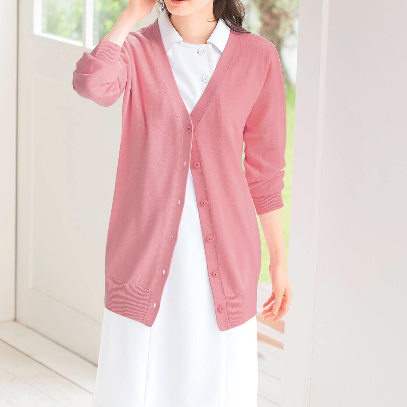 [アンファミエ] カーディガン 自宅で洗える なめらか 綿混 Vネック ロング丈 看護師 オフィス ナース 普段着 冷え対策