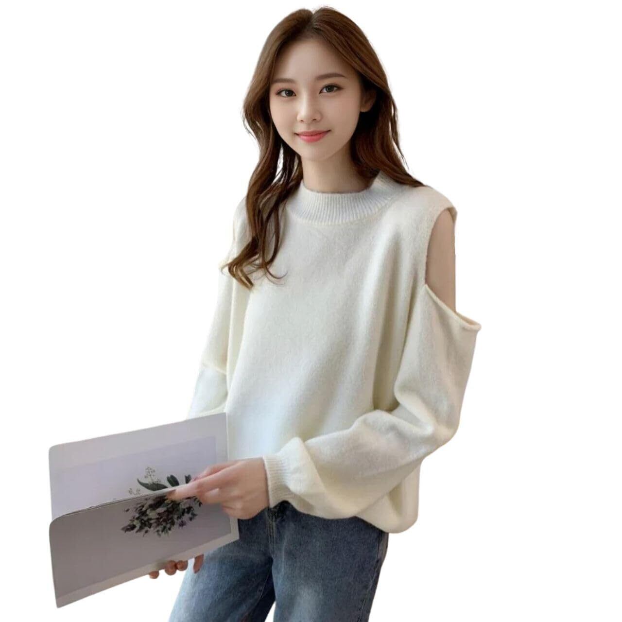 「[J-Scott] 肩出しニットトップス」は、トレンドを取り入れたモックネックデザインが魅力のアイテムです。肩を出すことで程よい肌見せを演出し、エレガントさとカジュアルさを兼ね備えた一着となっています。ゆったりとしたシルエットは、どんな体型の方にもフィットし、スタイリッシュに見せてくれます。