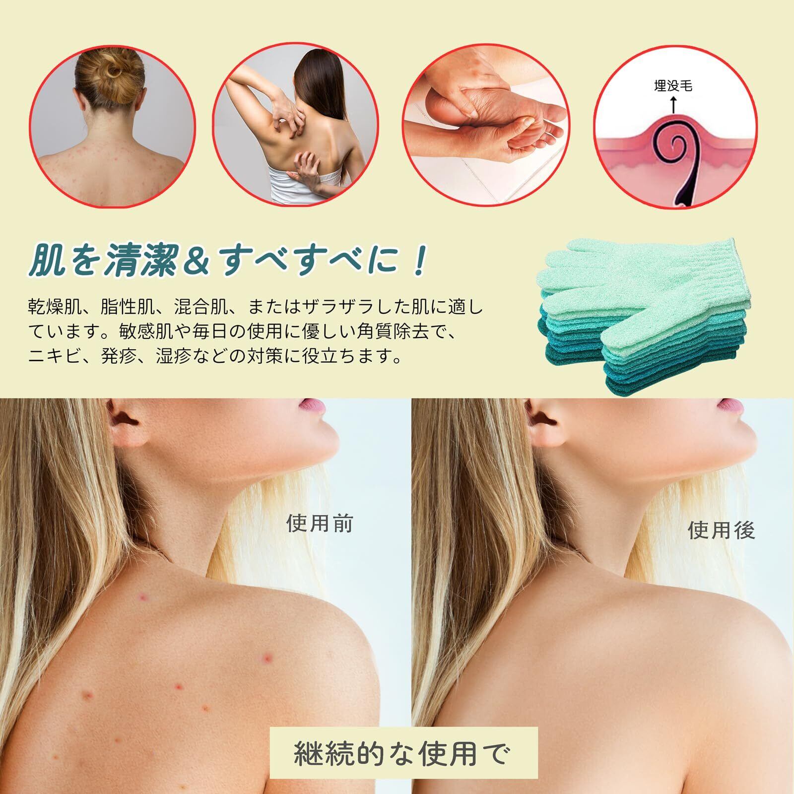 【新着商品】夢の物 8枚セット 垢すり手袋 あかすり 美肌効果 お肌に優しい お風呂 浴用 ボディウォッシュ 泡立ち 垢すり 角質除去 毛穴清潔 体洗い 浴用 耐久性 びっくりフレッシュ… (グリーン)