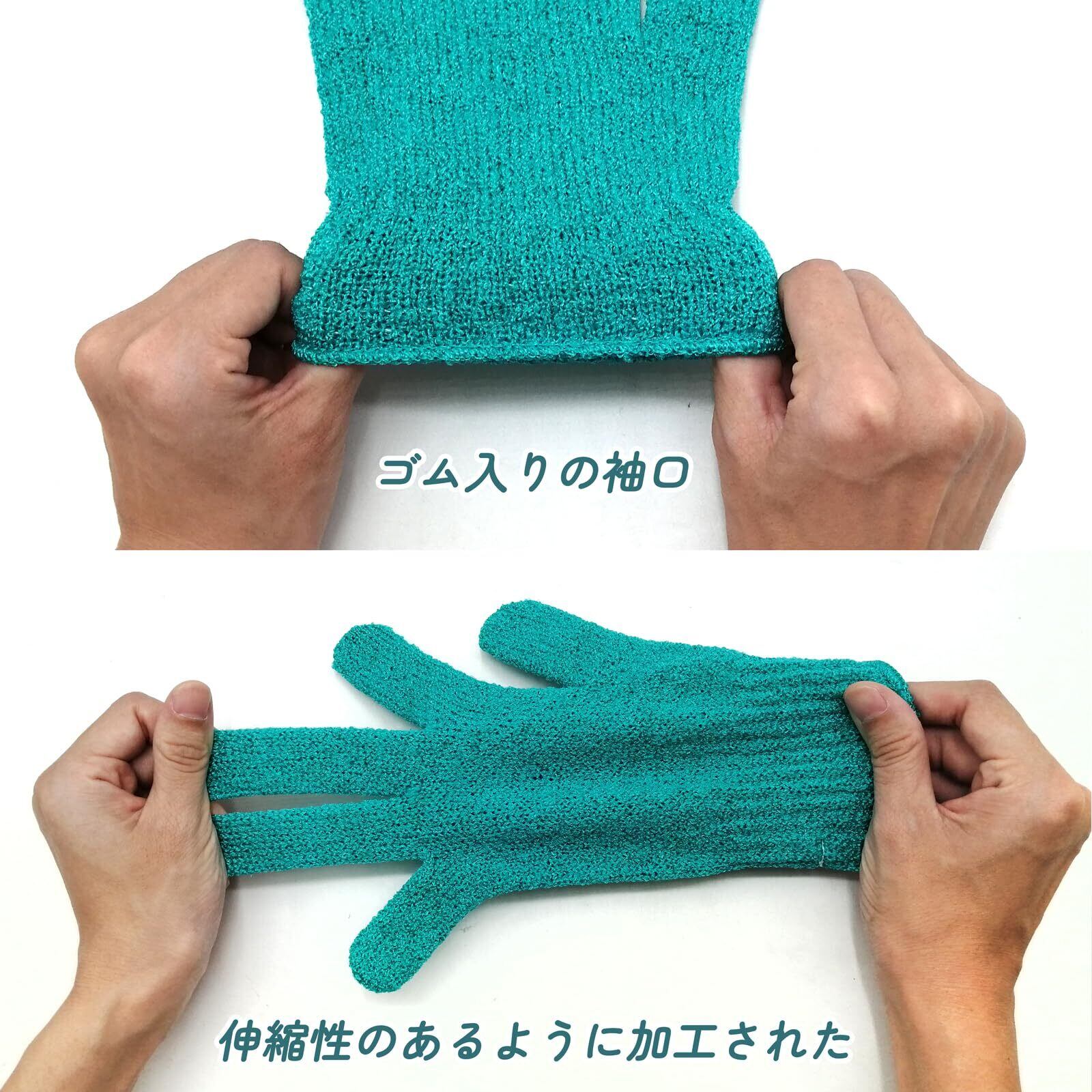【五本指タイプの入浴手袋】5本指タイプは手足の指の間などの細かいところもしっかり洗えます。 体のすみずみまであらって、やさしくマッサージします。袖口はシームレスで伸縮性のあるデザイン、脱落しにくいです!