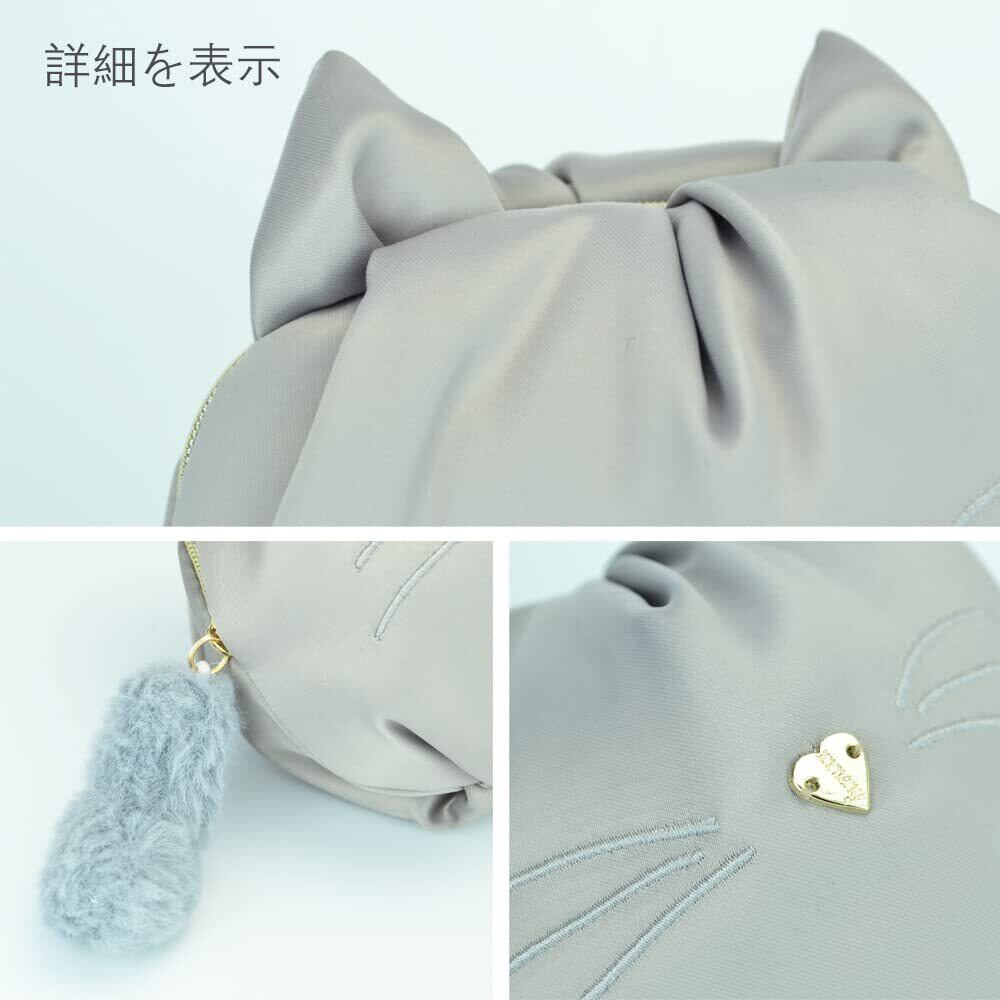 【在庫処分】Dr.Maylee かわいい レディース ポーチ - 小物入れ化粧品収納ボックス 猫柄 グレー