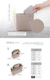 【商品仕様】 Sサイズ 幅16cm/高さ17.5cm/マチ10.5cm/重さ110g Mサイズ 幅23cm/高さ18cm/マチ11cm/重さ139g ・素材:フェルト生地 ・ポケット:外側4つ/内側6つ(ファスナー・仕切り含む) ・用途:バッグインバッグ、通勤バッグ整理、マザーズバッグ仕分け、小物収納など
