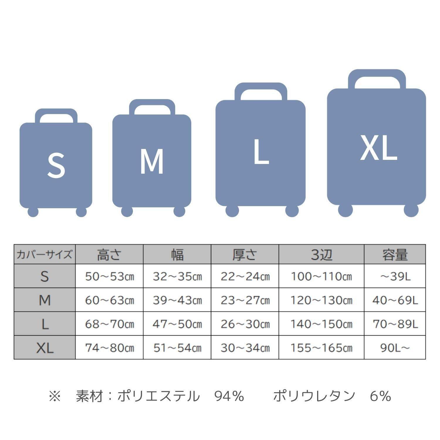 おおよその参考サイズは、Lは約26-28インチのスーツケースにフィットします。お手数ですが、ご購入前に必ずサイズ計測をお願いいたします。サイズ不明の場合は、お気軽にお問い合わせください。また、色合いに微細な違いが生じる場合がございますので、ご了承の上お求めください。