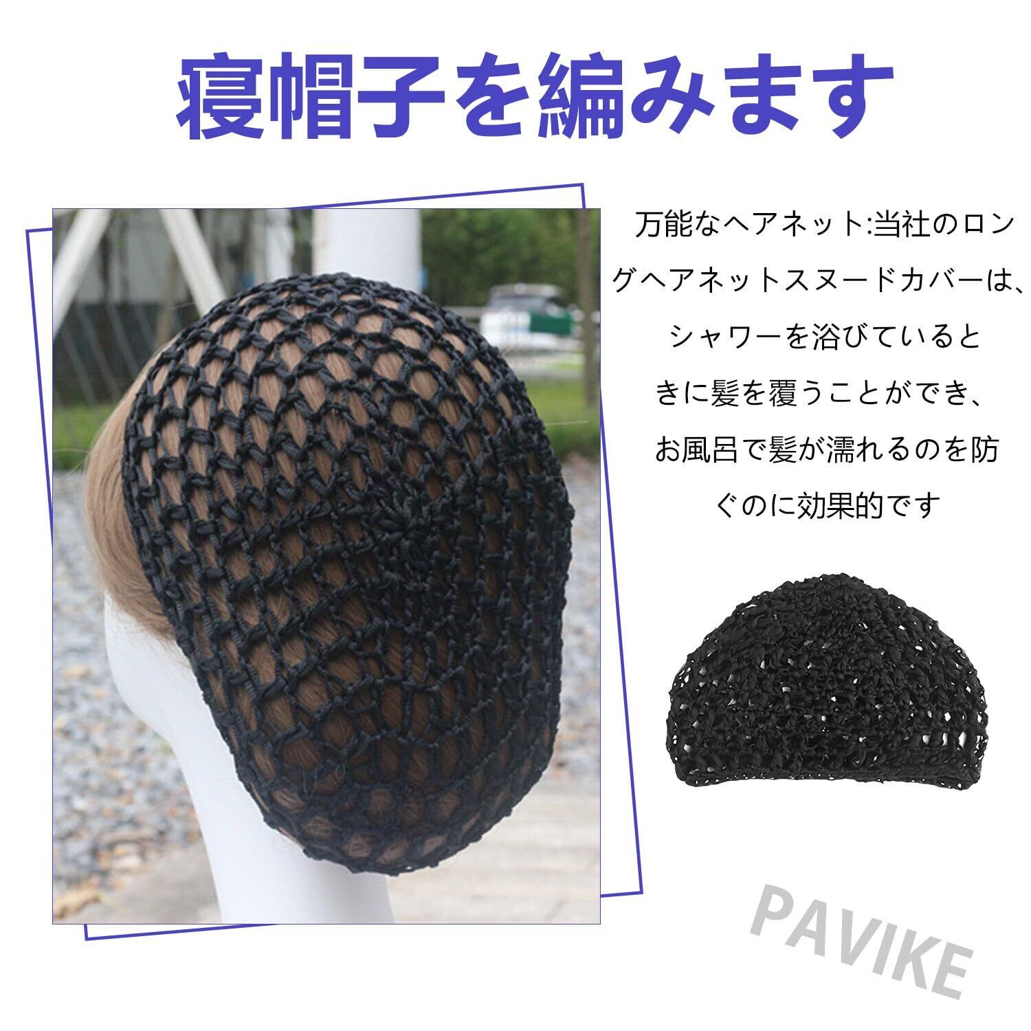 「PAVIKE ヘアネット」は、睡眠中でもあなたの髪をしっかりとサポートするために設計されたヘアキャップです!かぎ針編みニットのシックなブラックデザインで、見た目にも美しい仕上がり。カールやウェーブをキープしながら、髪の絡まりを防ぎ、朝のスタイリング時間を短縮します。