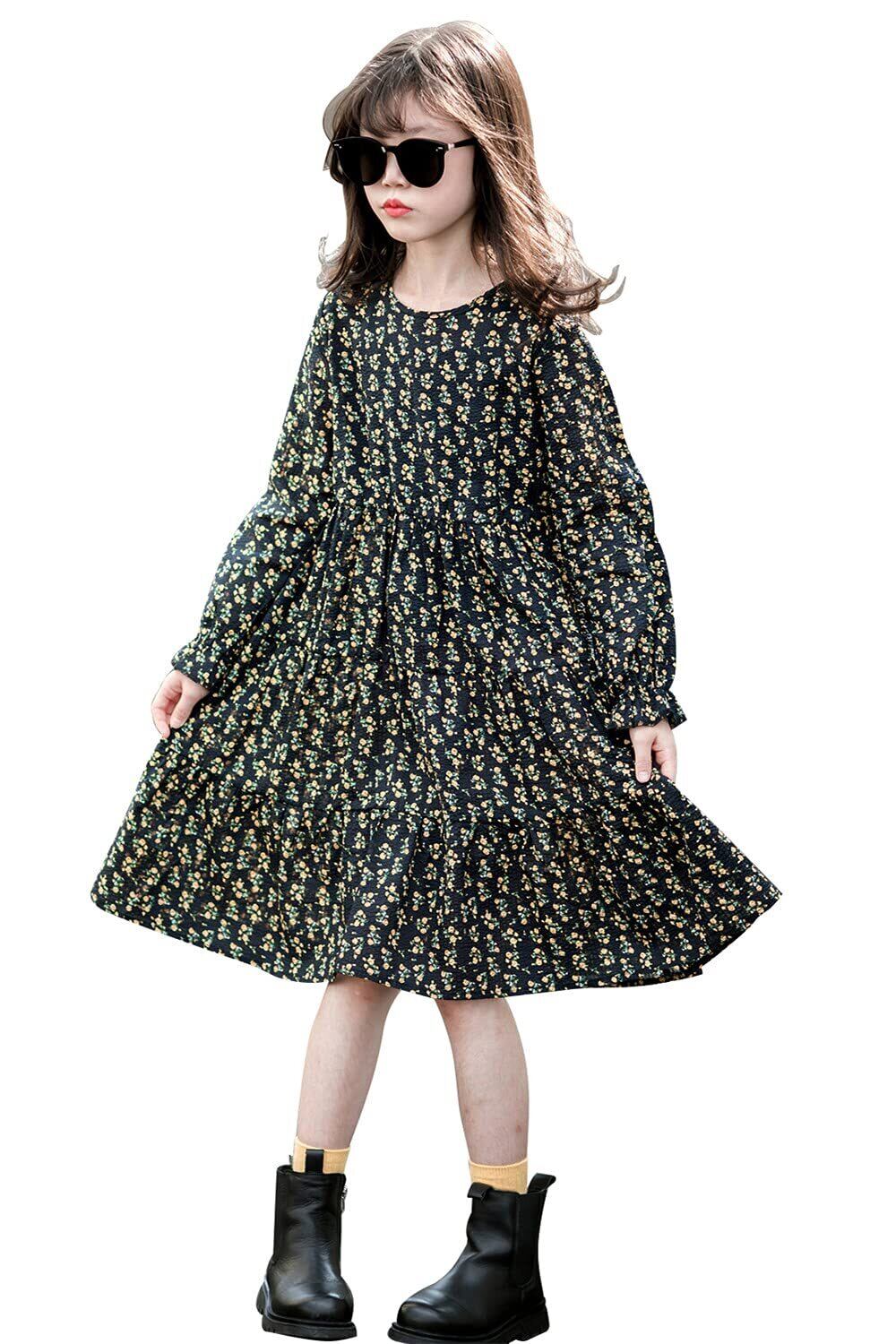 【特価商品】[美瑛屋] 子供服 可愛い花柄 ワンピース 長袖 女の子 春 秋 冬 小花柄 フリル袖 フレア 韓国服 発表会 結婚式 お呼ばれ 普段着 旅行 七五三 フォーマル カジュアル