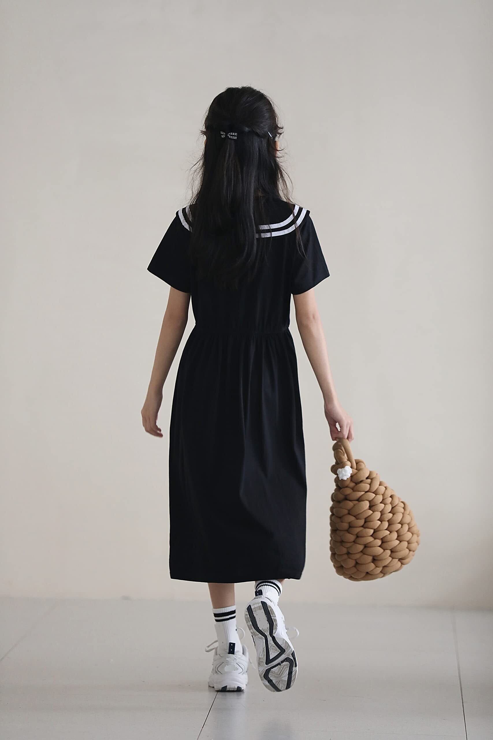 このワンピースのセーラー襟は、トラディショナルなスタイルに可愛らしさを加え、特別な場でも映える美しい雰囲気を作ります。シンプルながらも存在感のあるデザインで、お友達とのリンクコーデにもぴったりです!卒業式や特別なイベントに出席する際、華やかさを演出してくれること間違いなしです。
