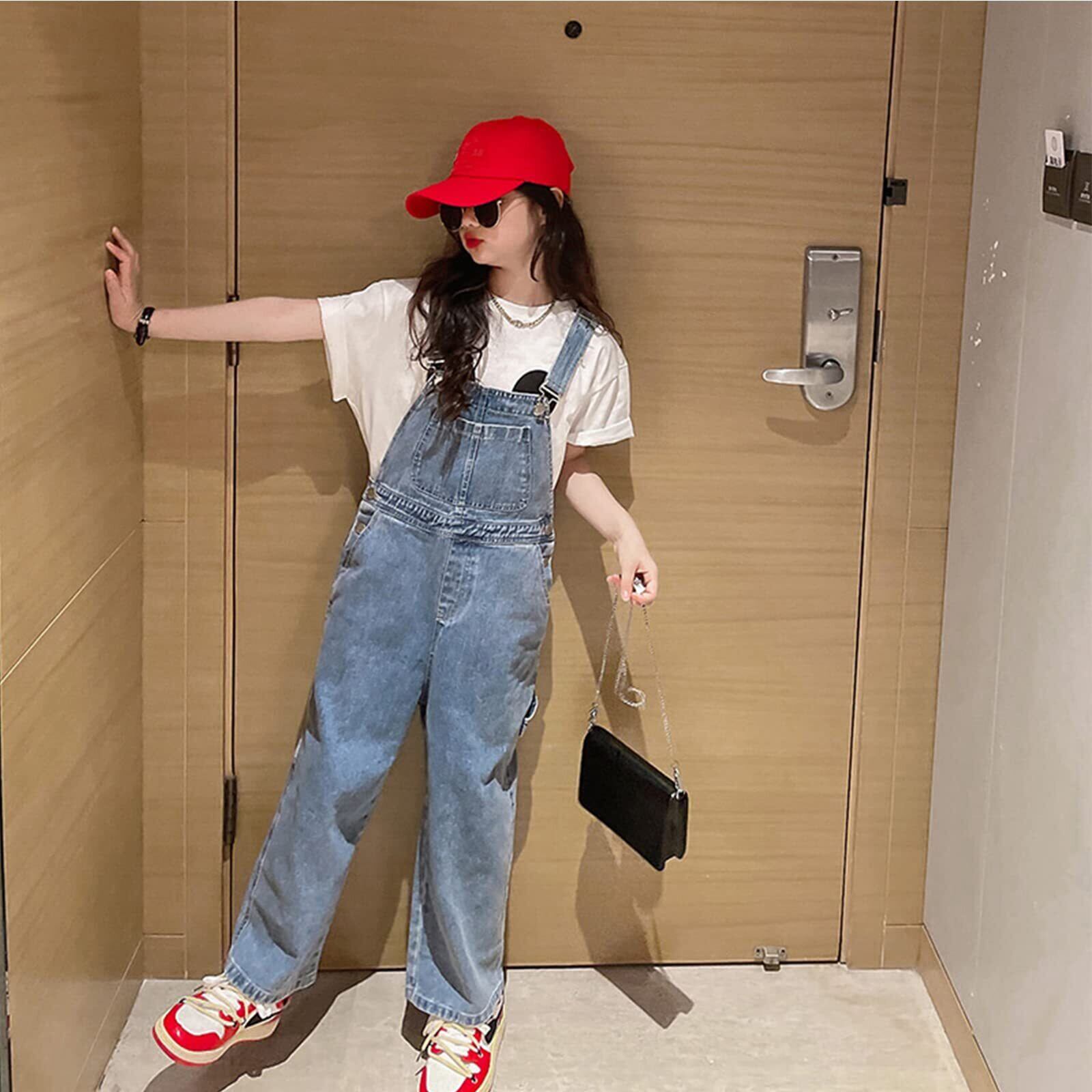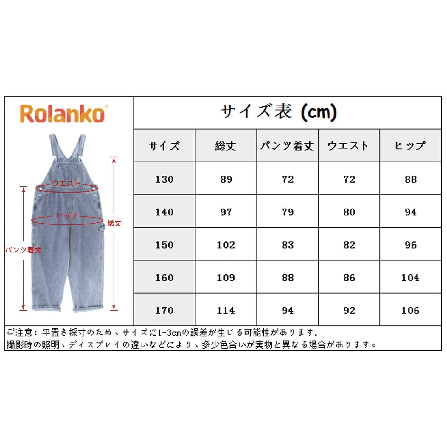 [Rolanko] 子供服 女の子 デニム サロペット キッズ ジーンズ ゆったり オーバーオール ワイド ブルー 130-170