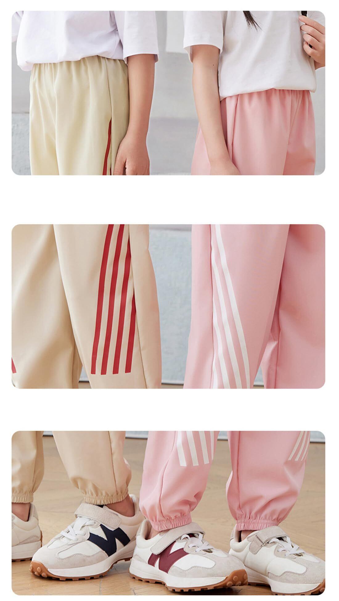 【数量限定】[VIISEN] 子供服 男の子 ロングパンツ 女の子 長ズボン キッズ ジャージ 男女兼用 縞模様 ウエストゴム 美脚ストレッチ カジュアル スポーツ ボトムス 多色 100-160cm