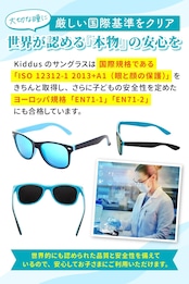 【 ちゃんと認定されていて安心 】ヨーロッパの厳しい検査をクリア CEマーク取得 高品質をお届けします。ISO 12312-1 2013+A1 (ISO 眼と顔の保護)取得している安心な品質。EN71-1 EN71-2 (ヨーロッパ規格 子供の安全性) 認定。