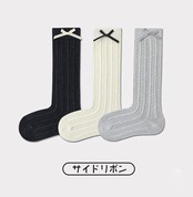 [ZGKULAEAOW] ハイソックス キッズ 女の子 リボン 靴下 膝下 子供 フォマール 3足セット ログランリボン ガールズ ジュニア 3足セット