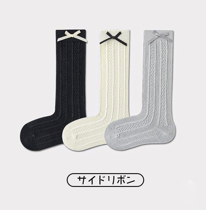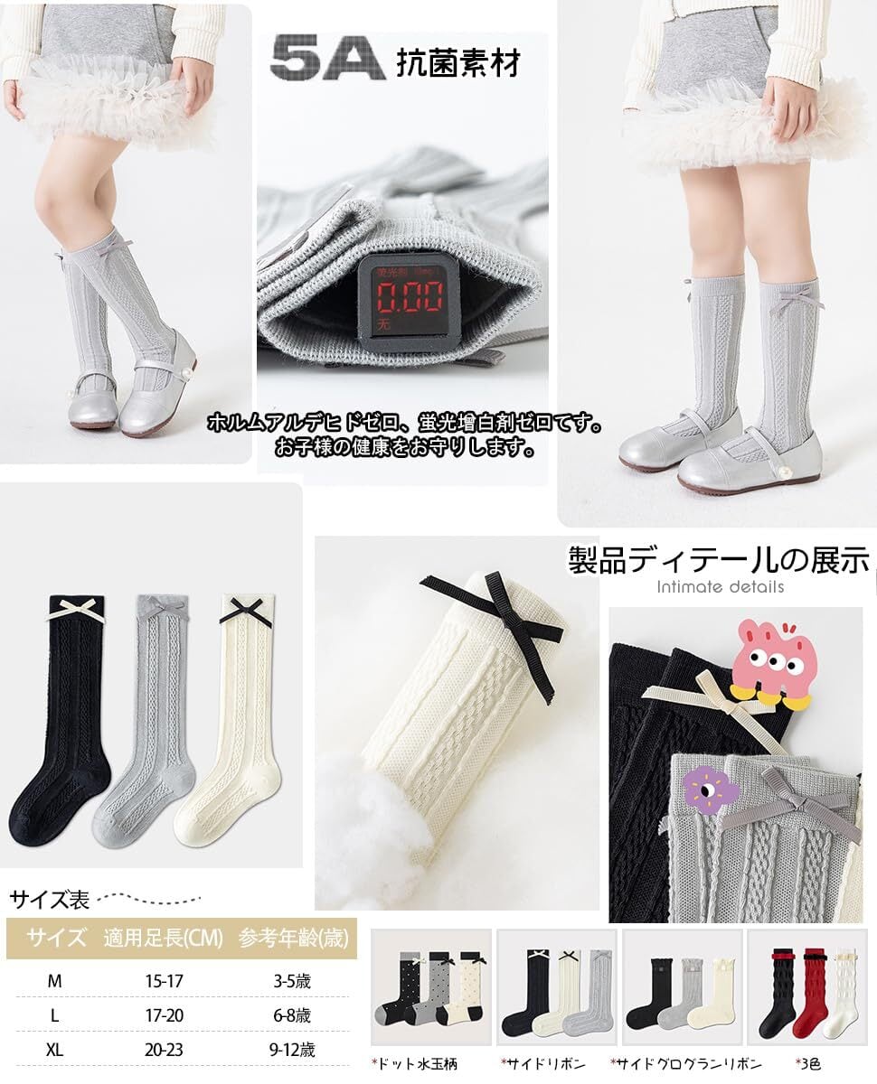 「[ZGKULAEAOW] ハイソックス」は、おしゃれなリボンデザインがポイントのキッズ用靴下です。膝下までの長さで、可愛さと暖かさを兼ね備えた3足セットは、日常使いから特別なお出かけまで幅広く活躍します!