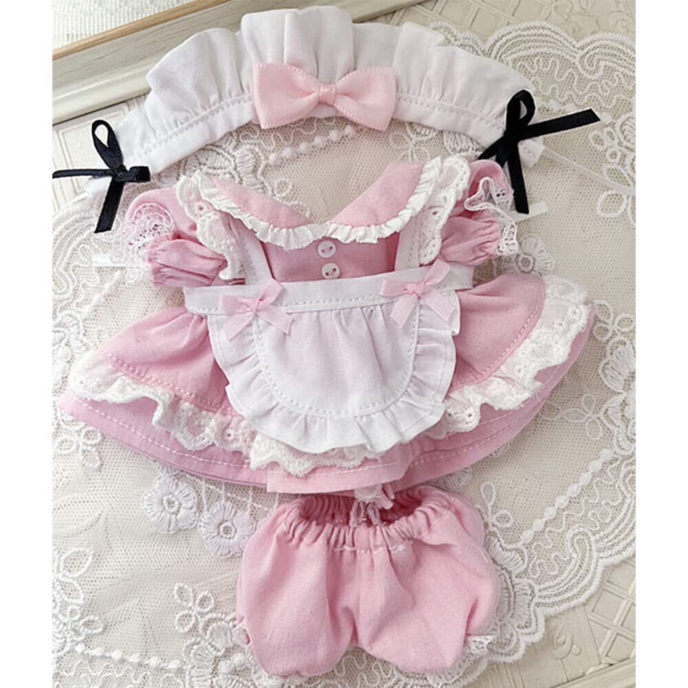 【特価商品】niannyyhouse 15cm ぬいぐるみ 用 メイド服 ヘアバンド ドレス エプロン ショートパンツ 着せ替え 綿人形服 (Pink)