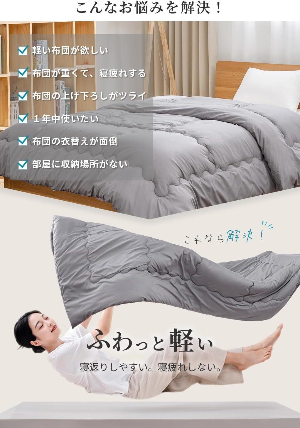 【フワっと軽い!】フワっと軽く体を包んでくれるので、よりリラックスした眠りに。女性でも持ち運びラクラク!来客用にもピッタリです。