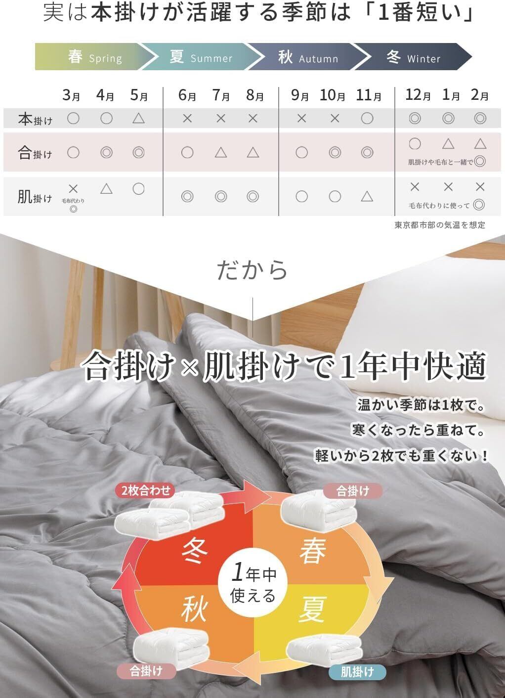 優れた通気性を備え、湿気を逃がしやすい設計になっていますので、夏はさらっと快適に、冬は暖かさをキープします。これにより、一年を通して安心して使用できるのが大きな魅力です。