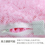 ファスナーを開けることで、内蔵の高さ調整材の量を調整できます。『ザーッ』とした感触が特長のメッシュ生地がムレを抑え、快適な睡眠環境をキープ。どんな寝姿勢でも安心してお使いいただけます。