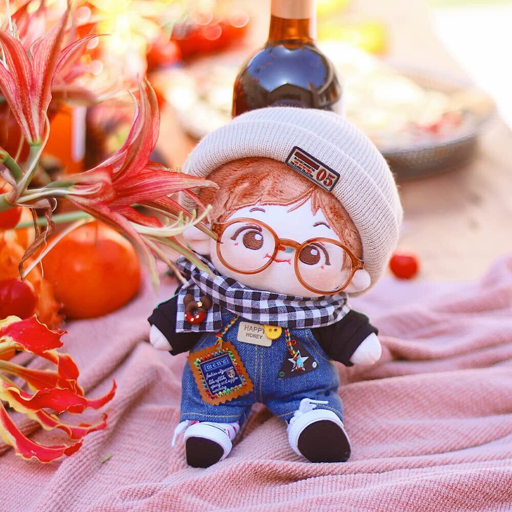 niannyyhouse 15cm ぬいぐるみ 服 ブラックフォレストセット チェック柄のスカーフ ニット帽 メガネ パーカー ビブドパンツ ルーズ 綿人形服 着せ替え (15cm)