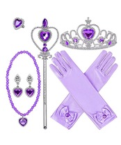 [DFsucces] プリンセス アクセサリー 7点セット コスプレ用 女の子 飾り おもちゃ 子供 ティアラ 魔法のステッキ 指輪 手袋 ネックレス イヤリング かつら 髪飾り 変身 ハロウィン クリスマ パーティー 文化祭 演奏会 (パープル)