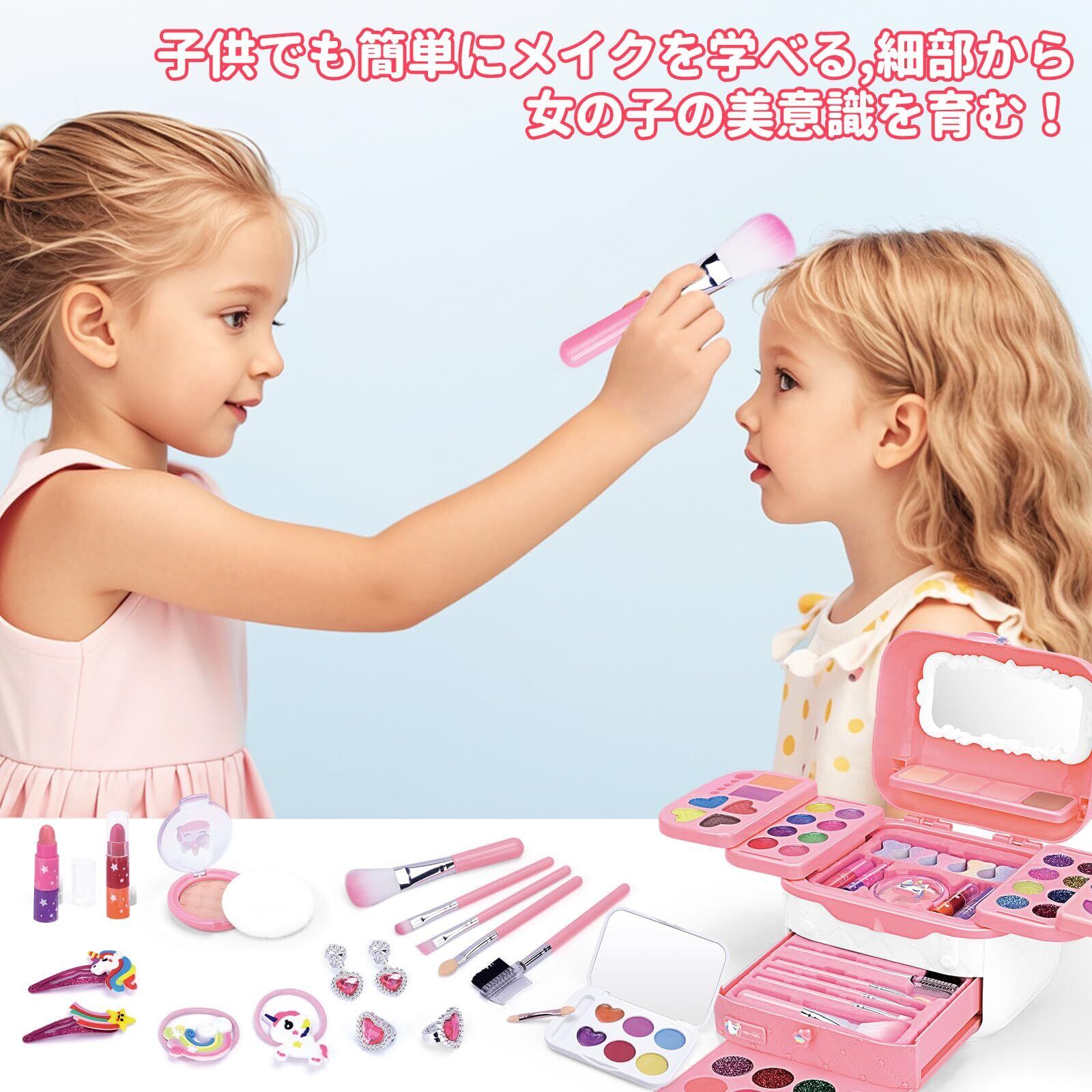 Bobblyfun 72点 子供 ピンク 女の子メイクセット ユニコーン プレゼント 誕生日 3 4 5 6 7 8 9 10歳 おままごとセット キッズコスメ 女児 お化粧セット 水で落ちる アイシャドウ ネイルポリッシュ リップスティック チーク ネイルシール メイクブラシ ヘアクリップ ピアス 収納ボックス付 メイクブラシ収納スタンド