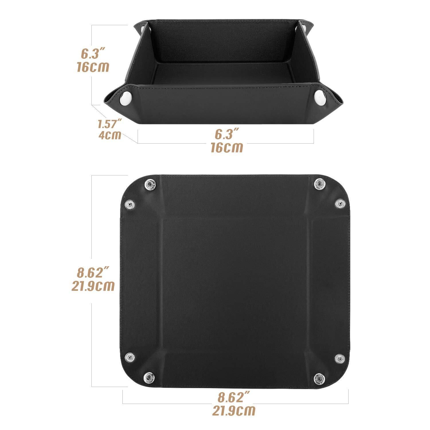 【特価セール】小物トレー - Luxspire PUレザー製 折り畳み式 時計・鍵・小銭・アクセサリー収納 小物収納 小物入れ ボタントレー Sサイズ BLACK